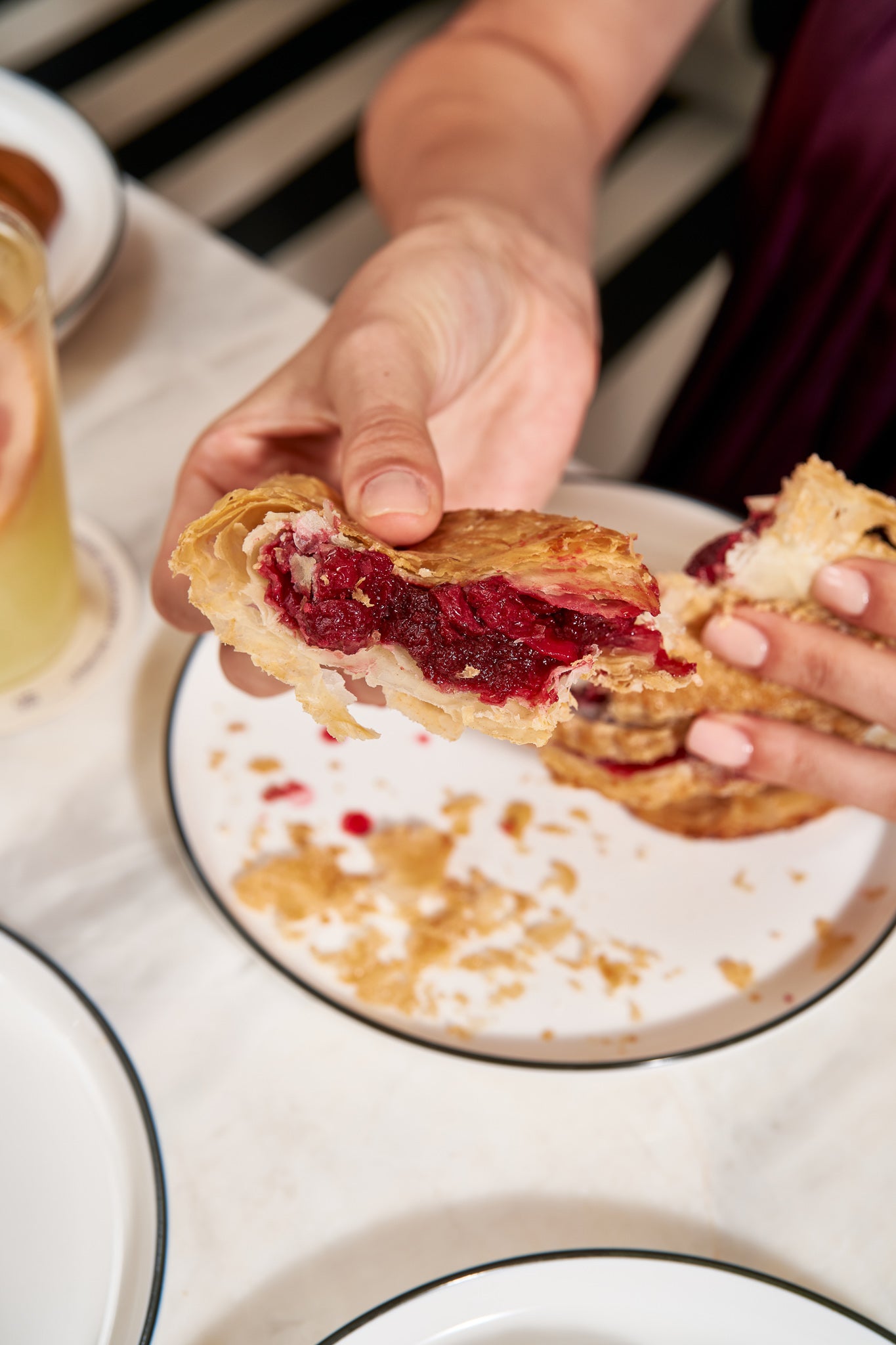 Aluat foietaj fermentat, umplut cu vișine întregi și confit acrișor de vișine.