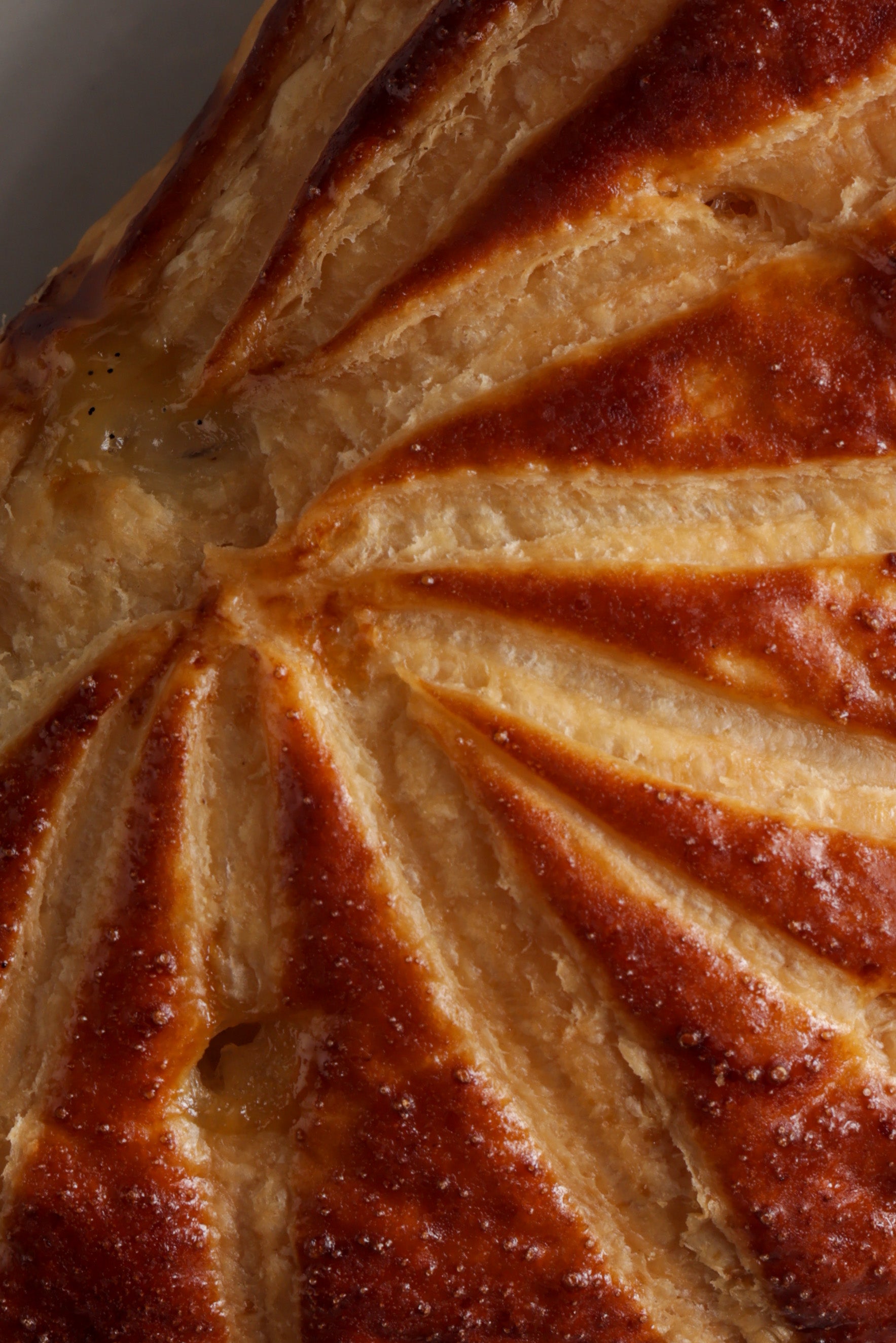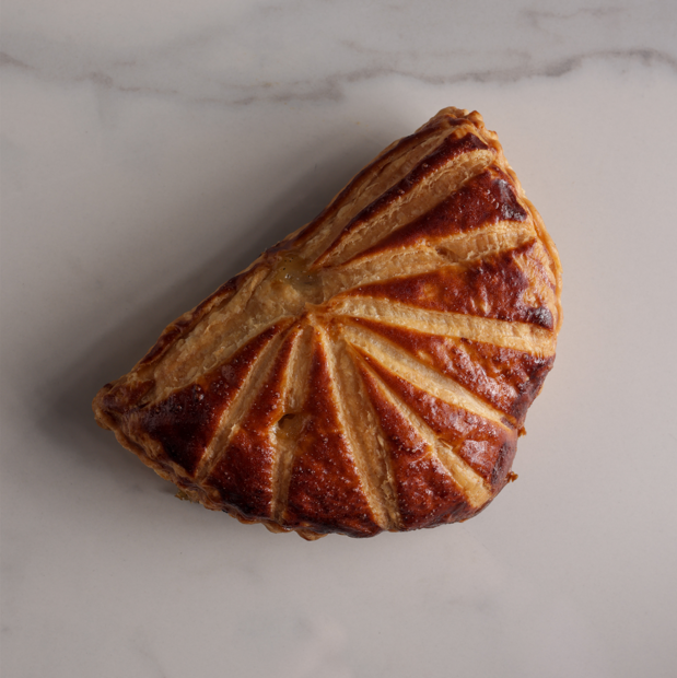 Aluat foietaj clasic, umplut cu compot de mere și piure de mere cu vanilie de Madagascar.