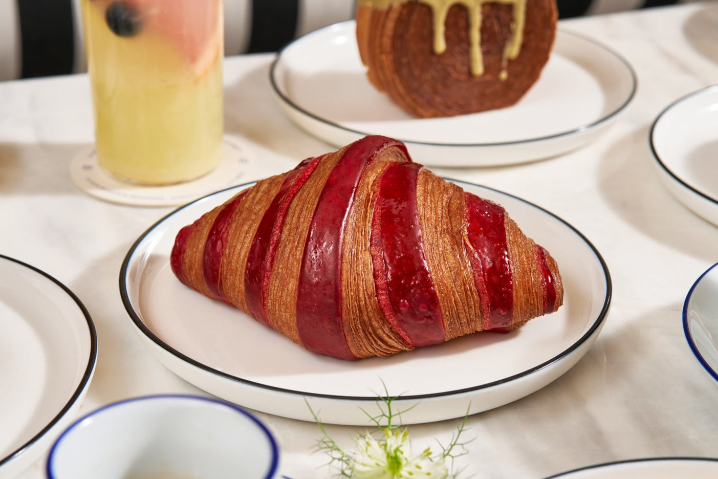 Aluat foietaj fermentat, umplut cu confit de zmeură.