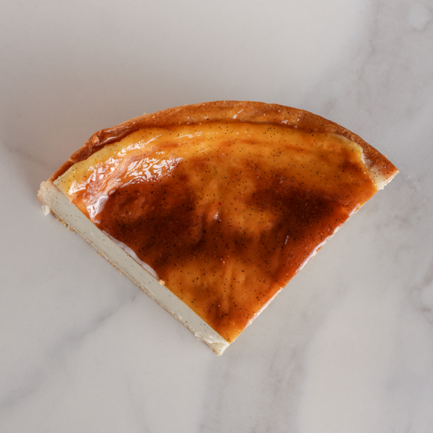 Aluat fraged cu unt, cremă fină de vanilie și mascarpone, acoperit cu glazură neutră cu vanilie.