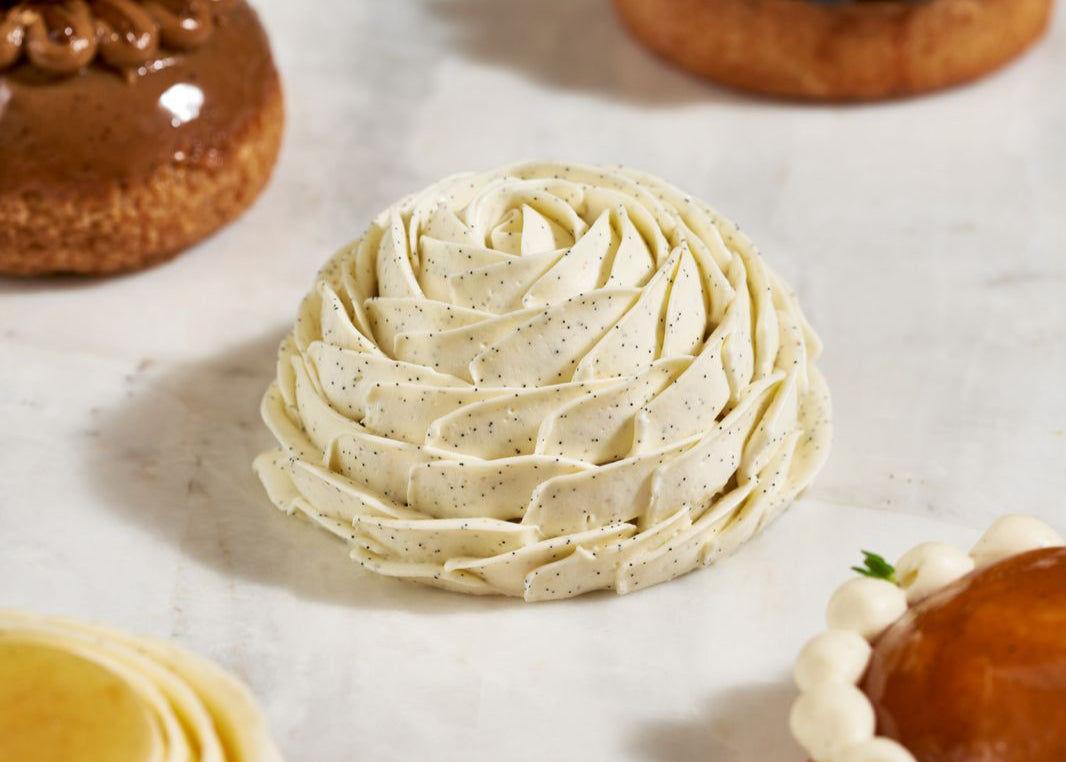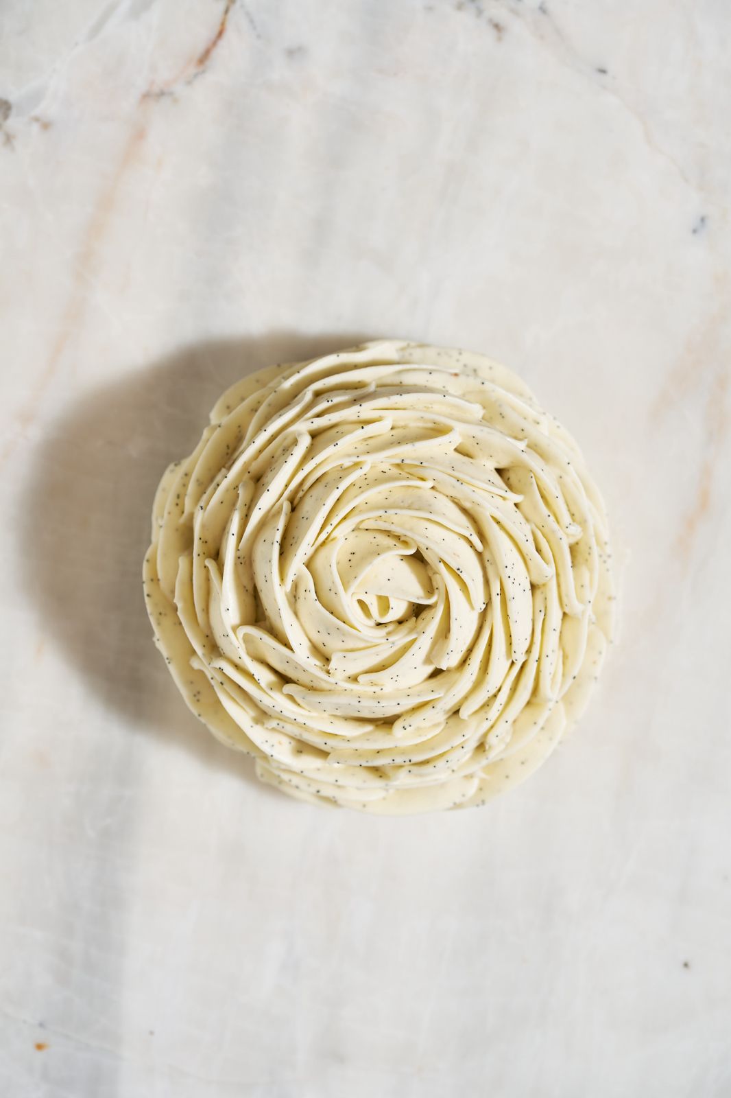 Decorat cu ganache de Vanilie de Madagascar, decorat manual în formă de trandafir.