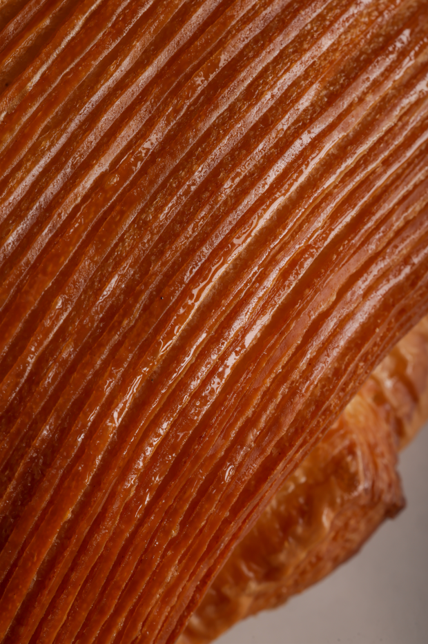 Aluat foietaj fermentat, umplutura de crema de vanilie si pepite de ciocolata 58%.